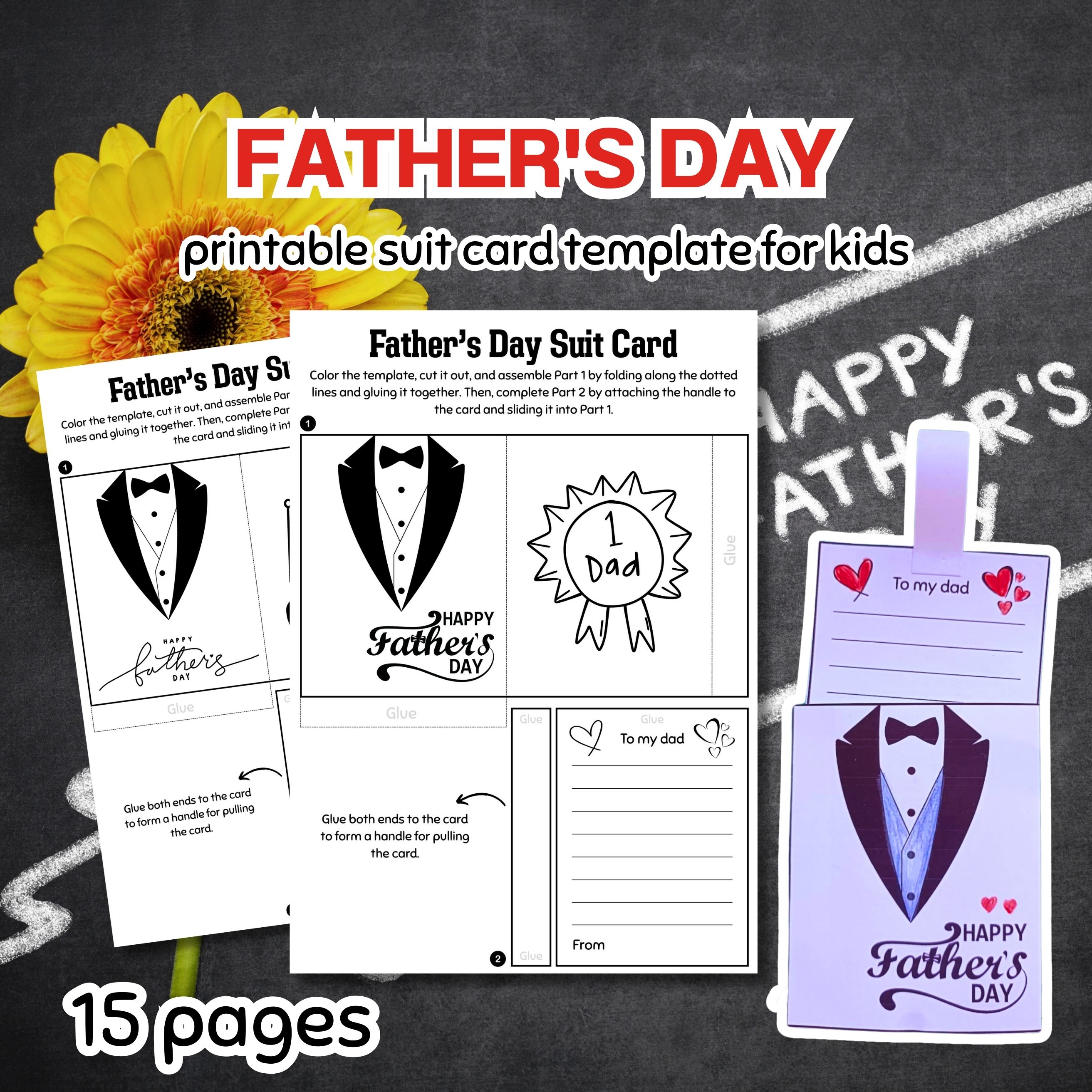 -A PDF file for 15 pages of Father's Day Suit Card Template