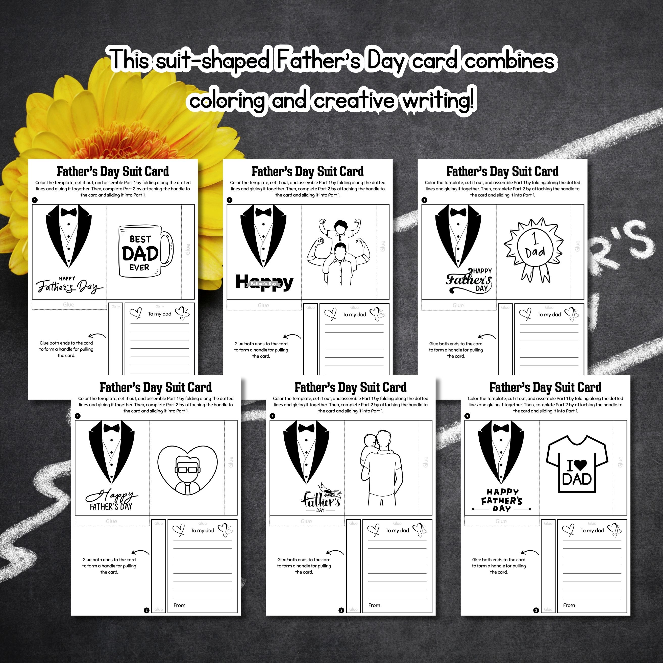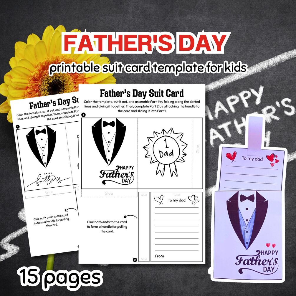 Father's Day Suit Card, Creative Writing Activity for Kids, DIY Card Template