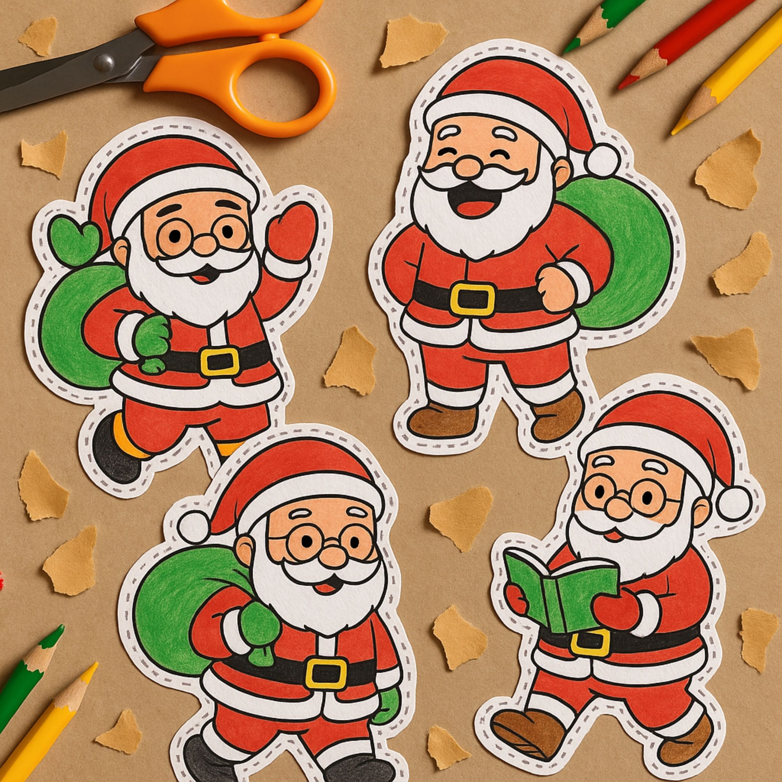 • 35 Santa Claus Coloring Craft Template Pages - 20 Different Santa Poses – Each in 3 Sizes (A4, A5, A6)